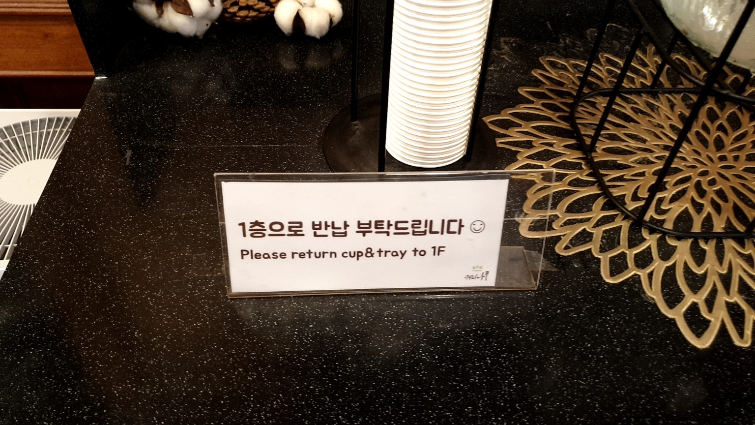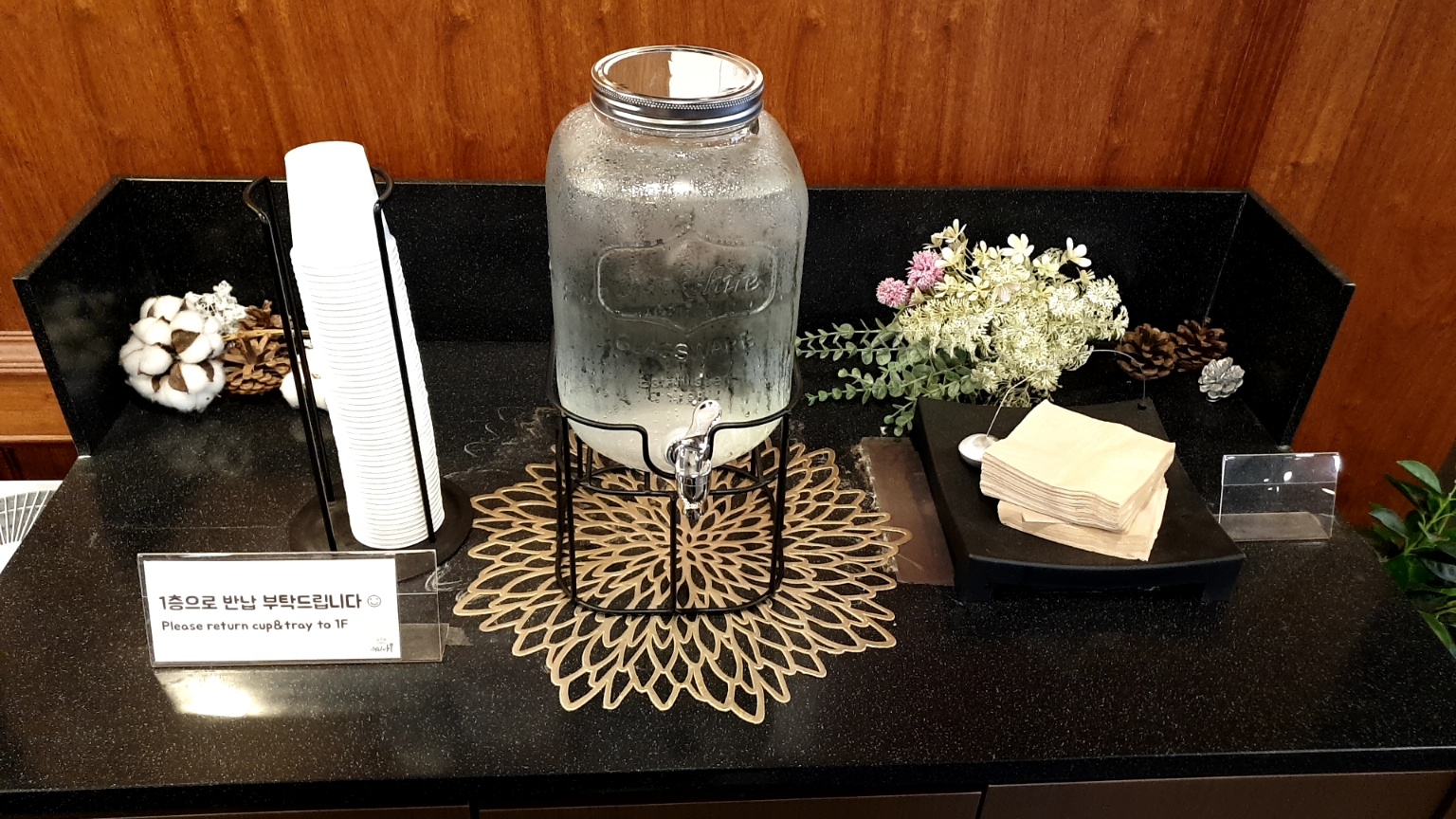영업시간이랑 설명란 / 그리고 물컵입니다.