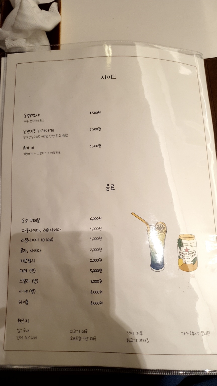 메뉴판은 그림으로 그린 것 같은 단순한 느낌입니다.