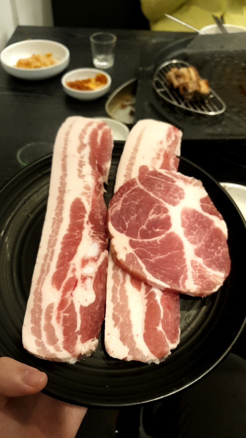 삼겹살 / 목살은 기본으로 있지만, 대패 삼겹살은 아마 첫 고기에만 주는 것 같습니다.