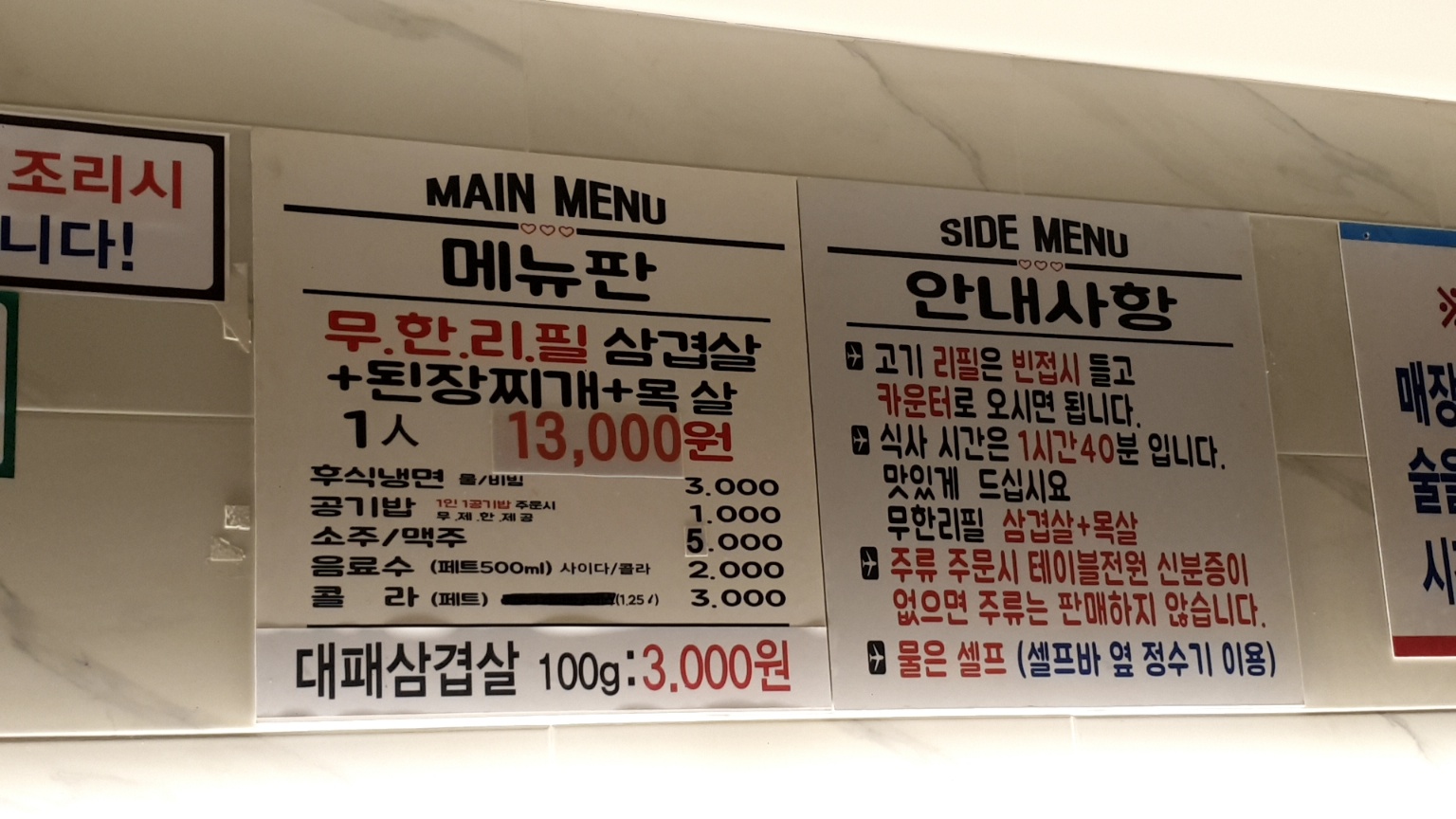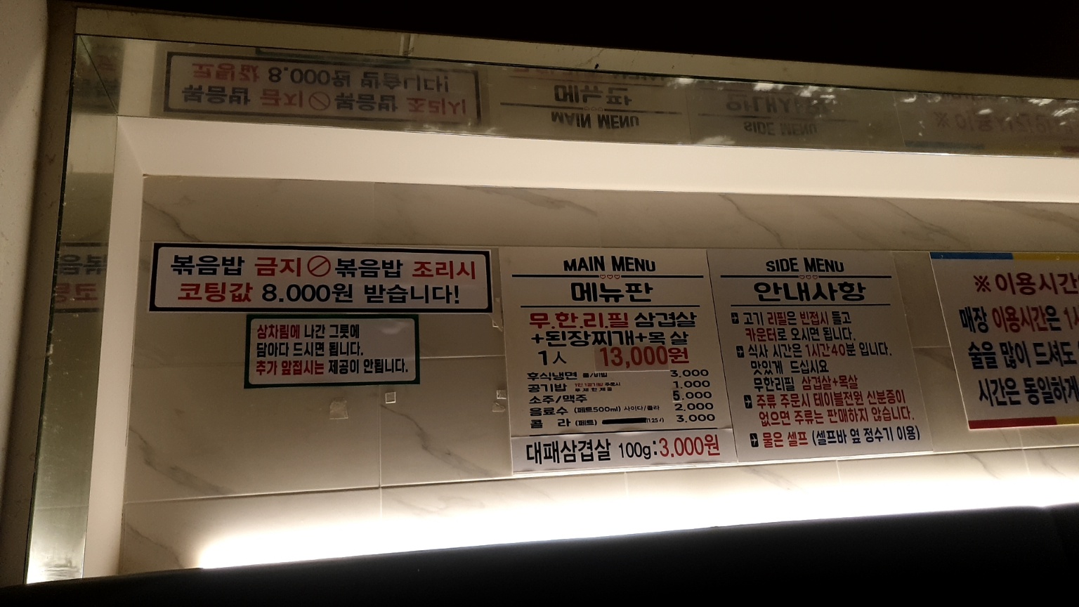 메뉴판에 보시면 대패 삼겹살은 3000원을 내셔야 추가 주문을 하실 수 있습니다.