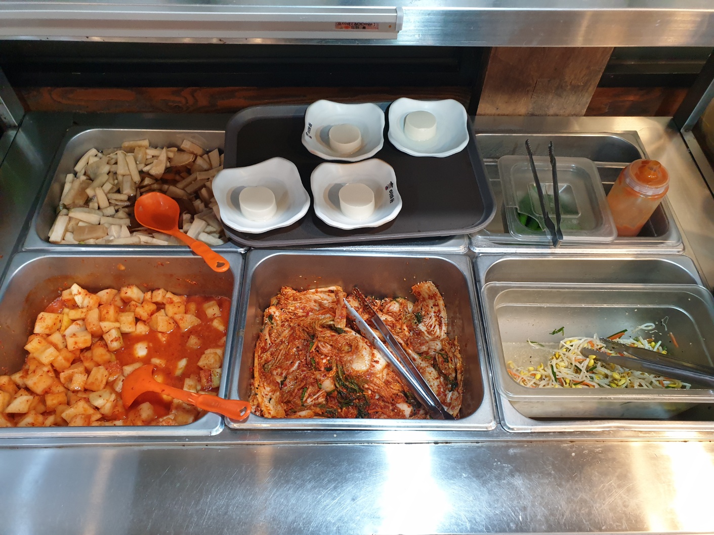 김치나 깍두기, 콩나물은 많은 가게에 있는 반찬이라서 놀랍지 않았습니다.