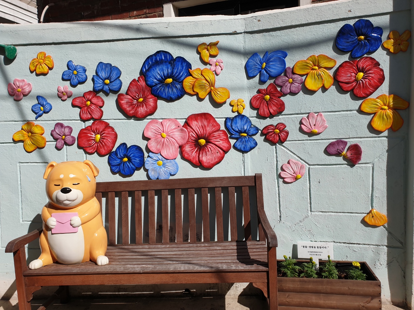 아무래도 아이들이 부모님과 함께 많이 방문하는 장소이다 보니까 아이들의 눈높이에 맞춰서 최대한 귀여운 캐릭터로 벽화를 꾸며서 눈길을 사로잡는 것 같아요.