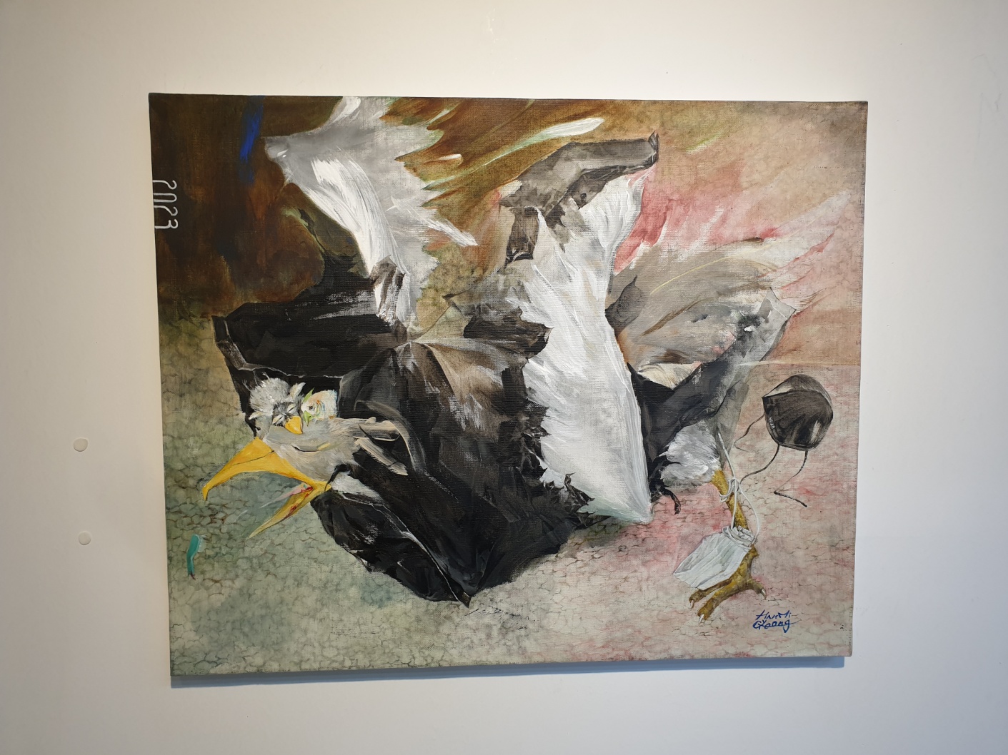 맨 마지막 가운데에 있는 그림인데 새의 모양은 비닐봉지와 쓰레기로 만들어서 환경오염을 조금 바로 확인할 수 있도록 만들었더라고요.