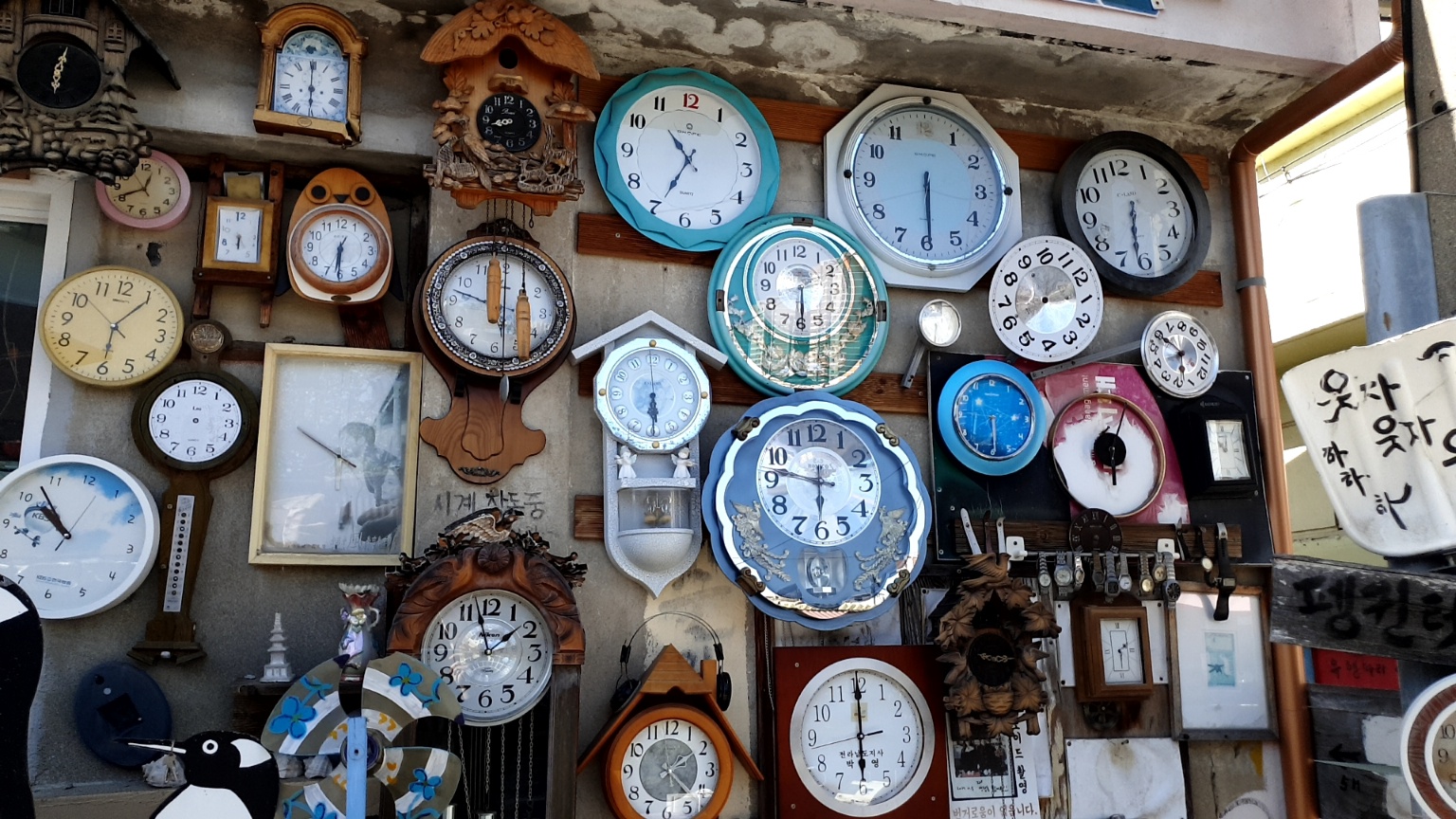 들어가자마자 입구에 정말 많은 시계가 있더라고요.