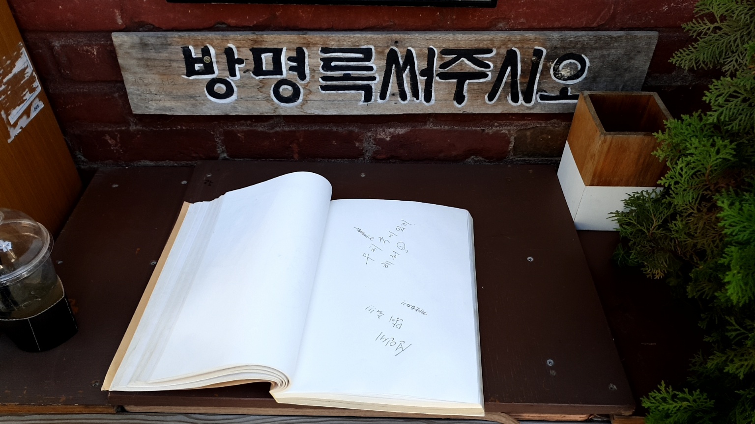 신기한게 바로 그 옆에 방명록을 쓰는 종이가 있더라고요.