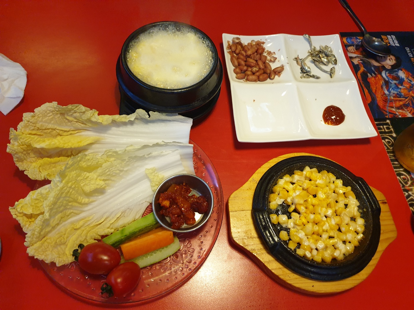 콘샐러드를 2번이나 리필하셨어요...