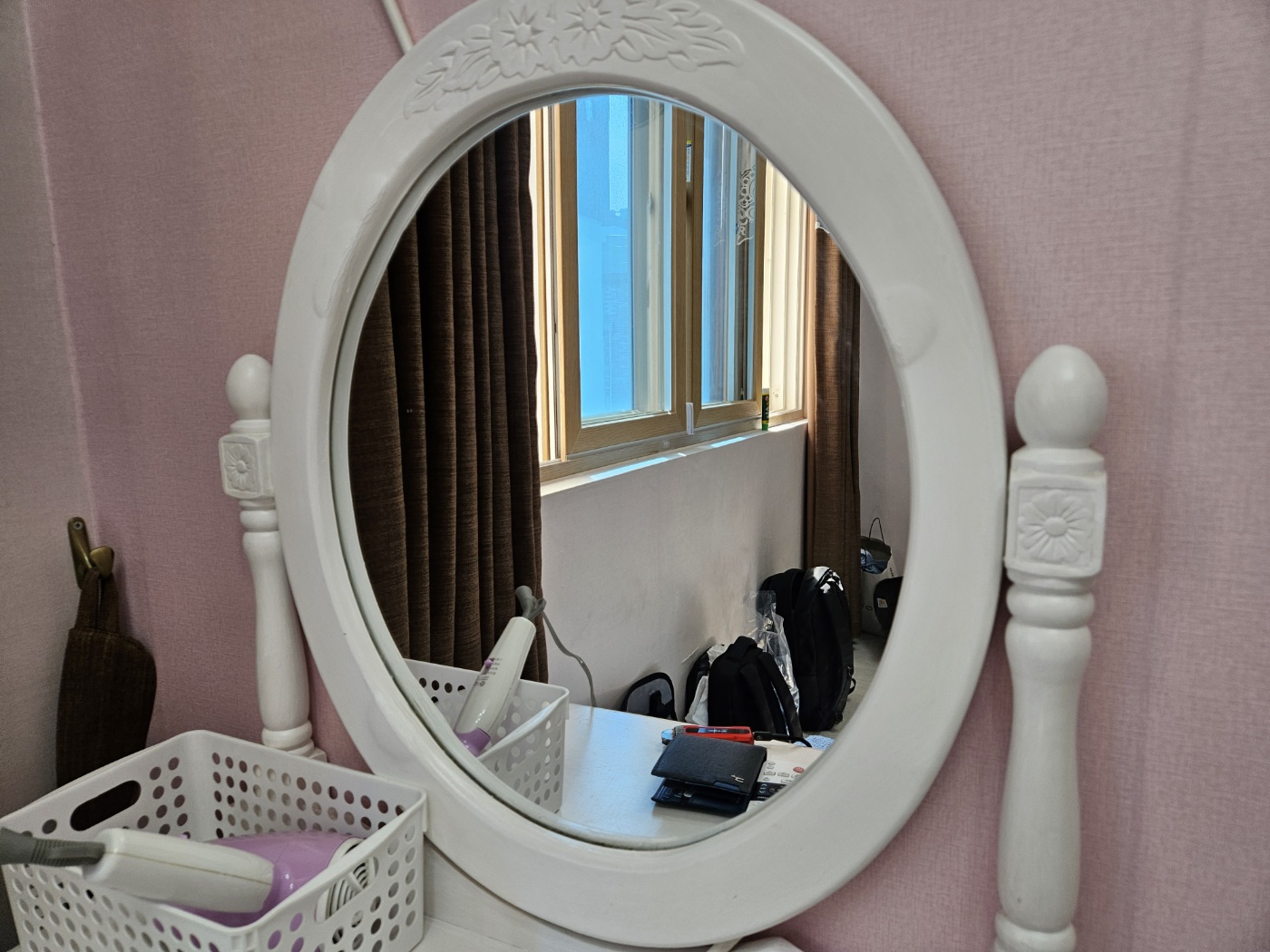 거울 바로 옆에 헤어드라이기도 있으니까 편하게 와서 사용하시면 될 것 같습니다.