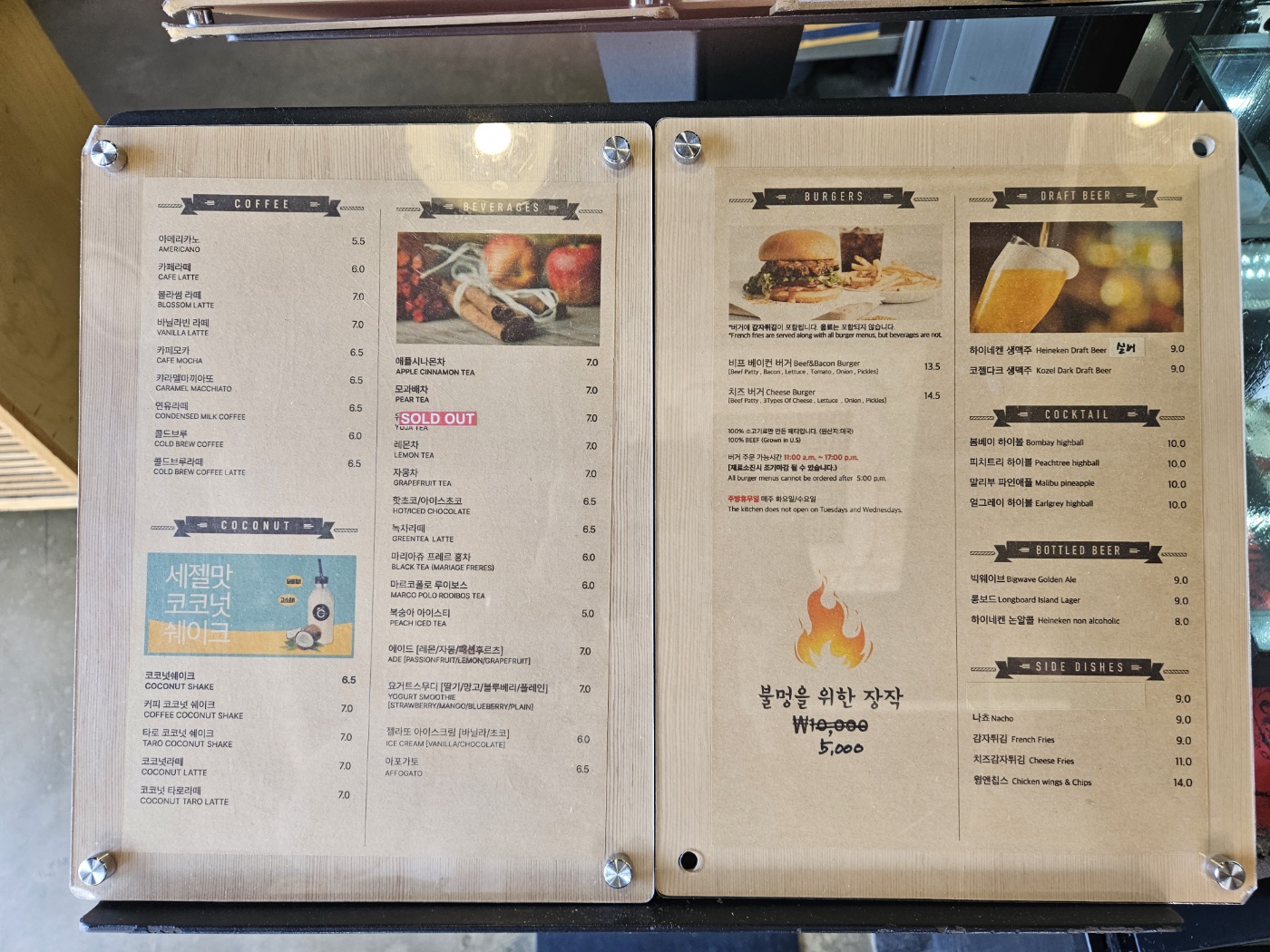 코랄커피 카페의 메뉴판입니다.