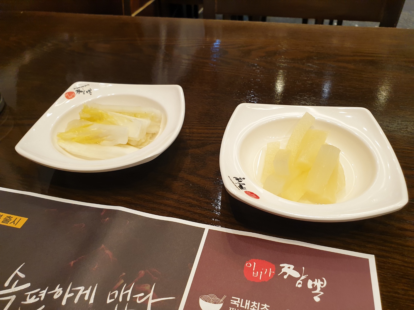 백김치랑 단무지를 주시는데 이거는 본가에 있는 이비가랑 똑같아요.