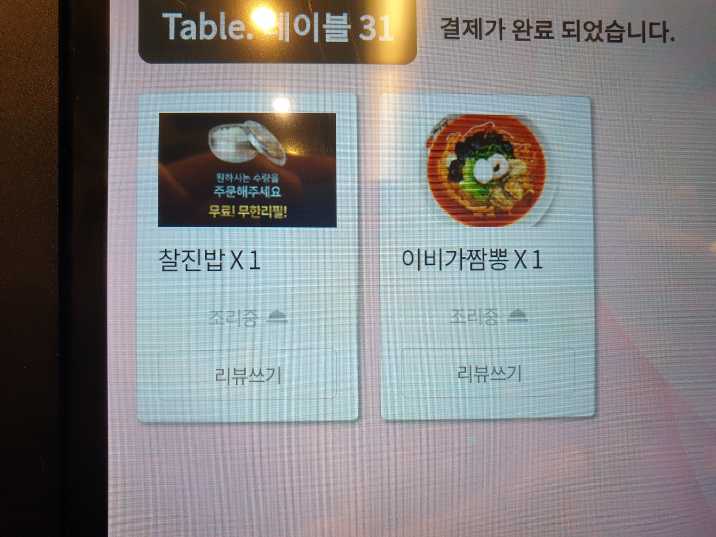 저는 제가 제일 좋아하는 "이비가 짬뽕 1인분" + 찰진밥 한 개를 주문했습니다.